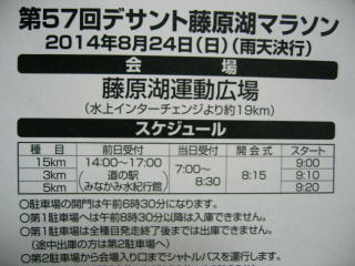 平成26年8月24日 群馬県利根郡みなかみ町の「第57回デサント藤原湖マラソン大会」の15キロに参加しました。