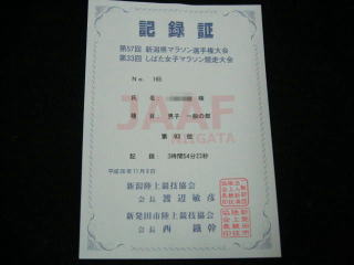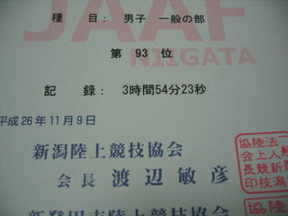 平成26年11月9日 新発田市の「第57回新潟県マラソン選手権大会」のフルマラソンに参加しました。
