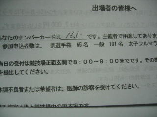 事前にナンバーカードなどが記載された封書が届きます。