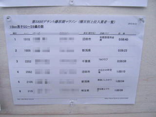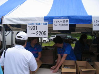 ゴールすると15キロ男子50〜59歳の表彰の集合のアナウンスをしていました。