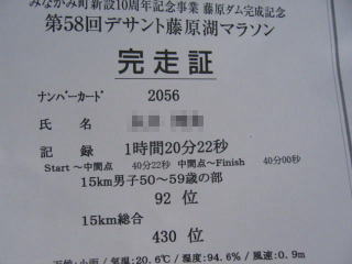 平成27年8月23日 群馬県みなかみ町の「第58回デサント藤原湖マラソン大会」の15キロに参加しました。