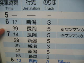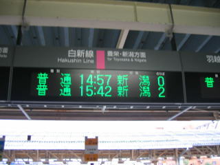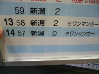 午後2時57分の新潟行に乗れました、これを逃すと1時間待ちです。