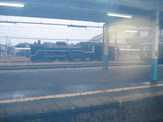 新津駅で発車を待っているとSLが1両編成で走ってきました。