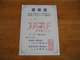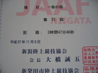 平成27年11月8日 「第58回新潟県マラソン選手権大会」のフルマラソンに参加しました。