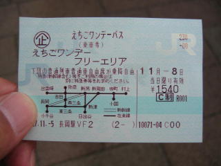 「えちごワンデーパス」村上から小千谷、出雲崎まで1日乗り放題、途中下車乗車もできます。
