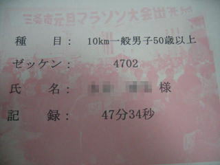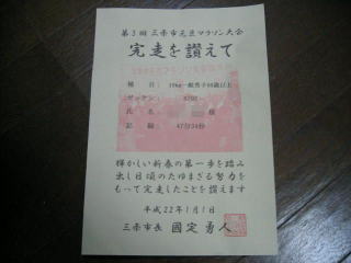 平成22年1月1日 三条市の「第5回三条市元旦マラソン大会」の10キロに参加しました。