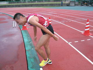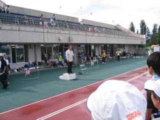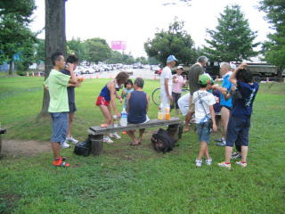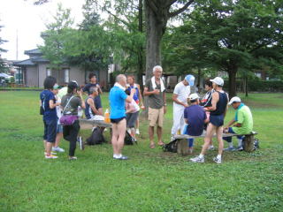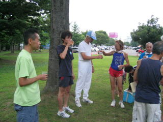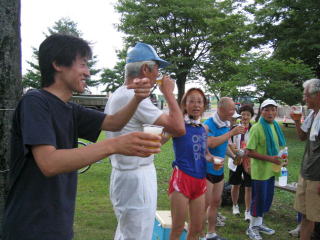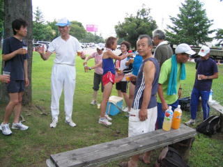 陸上競技場隅の木陰でささやかな宴会です。