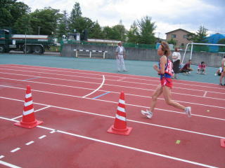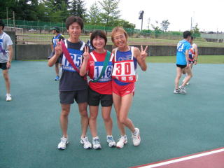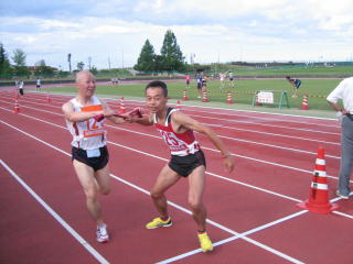無事、第1走者の川又君からからたすきを受取り、第3走者の石坂さんにたすきを渡すことができました。