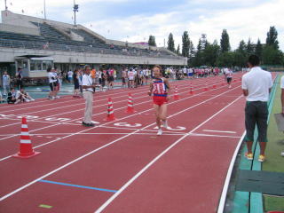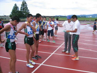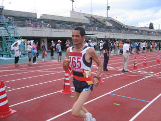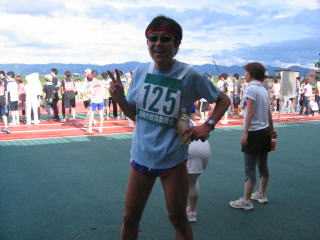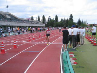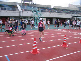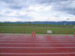 その先、長岡赤十字病院付属看護学校の裏あたりで折り返し、第4ゲートから陸上競技場に入り、たすきです。