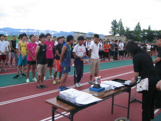 ナンバーカード125の若者(川又君)は当チームの第1走者です。