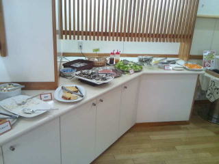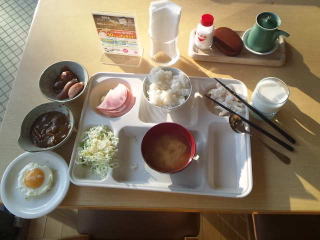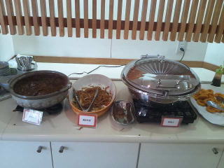 午前7時に起きて、フロント脇の朝食会場へ向かいます。