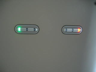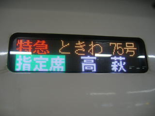 ときわ75号高萩行き、席上のランプ、青が指定席発売済、赤は未発売です。