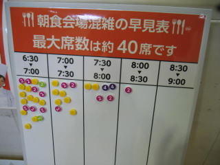 去年は7時に起きて朝食会場へ向かいました、早い時間ほど混んでいるようです。