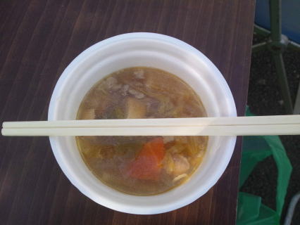 イスにこそ座りませんでしたが、とん汁とおこわをいただきました。
