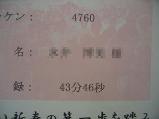 ベストは平成21年1月1日の「第4回三条市元旦マラソン大会」の 43分20秒でした。