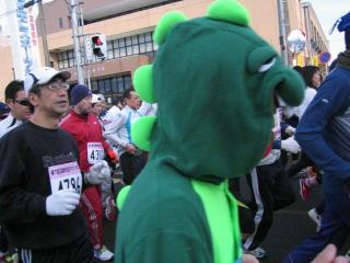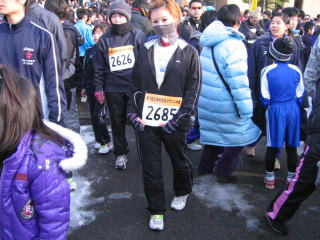 ピンクナンバーカードを付け10キロに参加します、天気は良いものの、やはり結構寒い。