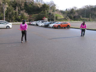 いただいた「みつば」などの参加賞が邪魔なので、車に入れに行きます。