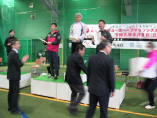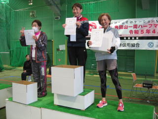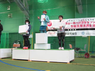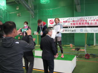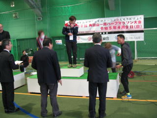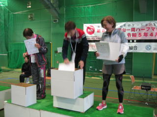 つくしんぼさんは後半足を痛めたようで自分で表彰台に上がれず、takaさんが手を添えます。