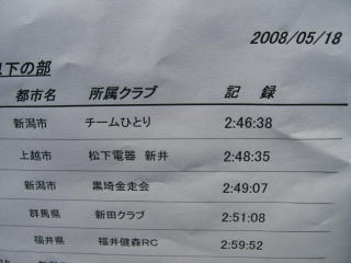 平成20年5月18日、柏崎市の「第8回柏崎潮風マラソン大会」のフルマラソンに参加しました。