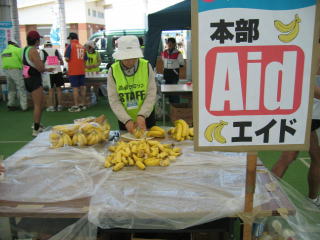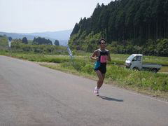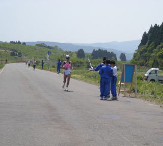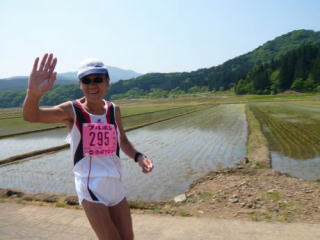 32キロの新道給水場を年代別トップで快走する黒豹さん、年代別22位で走る姫ちゅです。