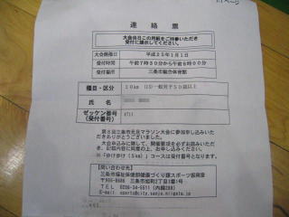 大会エントリーはネットで行い、自分でナンバーカード記載の連絡票をプリントアウトします。