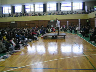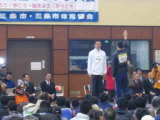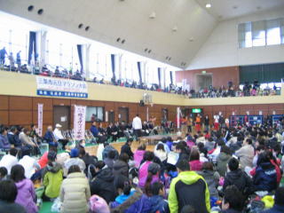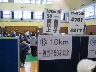 会場の三条総合体育館内はランナーで満杯です。