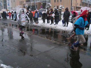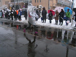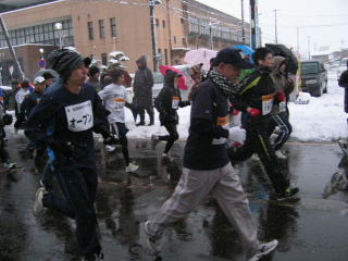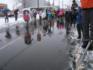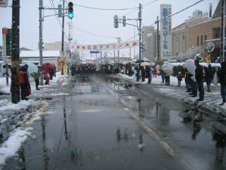 路面はシャーベット状の雪、消雪の水がとても冷たい、足先、指先は感覚がありません。