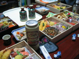 お楽しみのたくさんの美味しくて豪華なご馳走とお酒です。