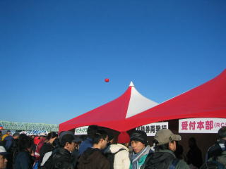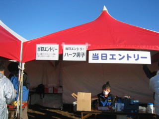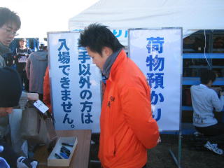 男子のスタート時間は10時10分、荷物を預けてスタートラインに並びます。