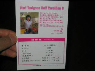平成19年1月14日 東京都北区の「第8回谷川真理ハーフマラソン大会」のハーフに参加しました。