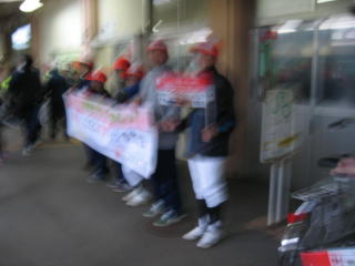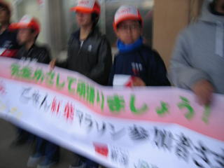 中学生かな?「ごせん紅葉マラソン」の横断幕を持って歓迎ムードたっぷりです。