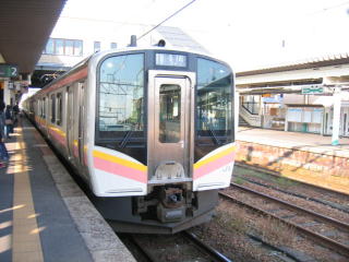越後湯沢方面から来た長岡駅行きです、長岡駅でスムーズに乗り換え、新津駅で磐越西線馬下行きに乗り換えです。