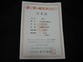 平成29年11月5日 五泉市の「第9回ごせん紅葉マラソン」のフルマラソン(フル99戦目)に参加しました。