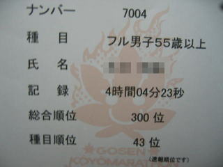 結果は4時間04分23秒でした、納得のいくものではありませんが先週の柏崎フルより2分26秒早くなりました。