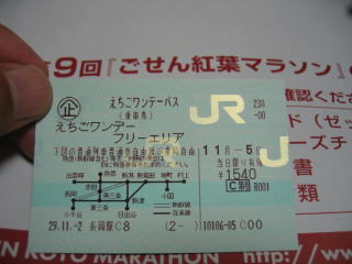 11月2日の木曜日にお得な切符「えちごワンデーパス」1.540円を買いました、普通に買うと片道1.144円(suica)ですからお得です。