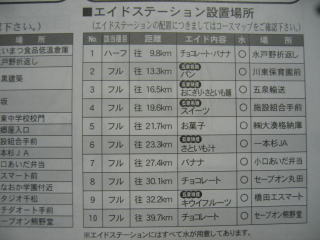 次は土手の上の風が強い当たりだったかな、19.6キロのスイーツエイド、お汁粉寒天(羊かんゼリー)?甘い黄色いお砂糖のかかったラスク?