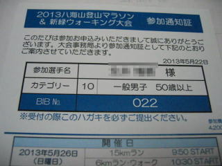 事前にナンバーカードや大会コースを知らせる封書が届きました。