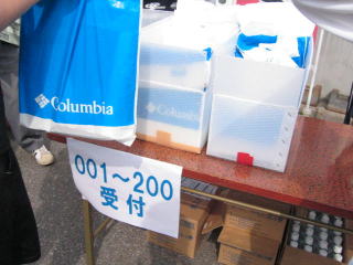 受付で頂いた、ナンバーカードが書かれた袋に、おにぎり券や水、車のカギを入れて預けます。
