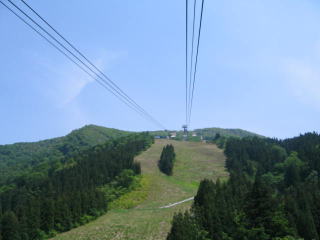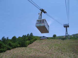 ロープーウェイ駅でタオルをいただき、ロープーウェイに乗って戻ります。