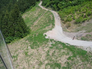 眼下の登山道?コースをランナーもガンガン登っていきます。