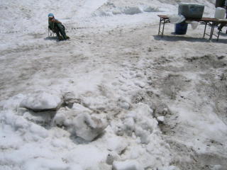 今年は雪が多く、コース上の上の方は雪のコースの様です。