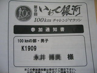 平成25年6月9日 岩手県の「第9回いわて銀河チャレンジ100kmマラソン」はDNSでした。