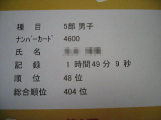 ここのコースベストは1時間46分ですが、昨年より約8分早くゴールできました。