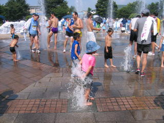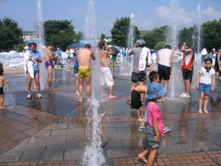 去年はお休みだった噴水が復活、汗を流しとても気持ち良いシャワー代わりです。