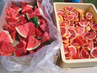 スイカ、グレープフルーツ、大根、バナナなど大盤振る舞い。
