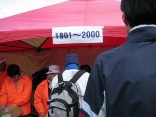 オレンジのおじさんの左側から男子、右側から女子がFINISHゲートへ向かいます。