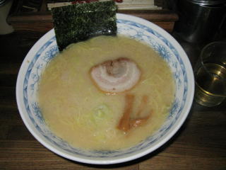 カウンター8席のみの立ち食いラーメン屋さん、一番人気の「龍龍麺(ロンロンメン)」550円の大盛100円です。