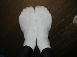 スーパーで買った安売りソックスは1レースで穴が2ヶ所も開きました、マイッタマイッタ。