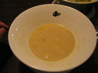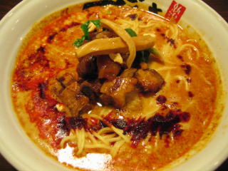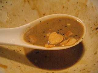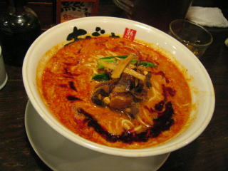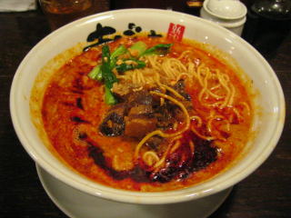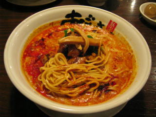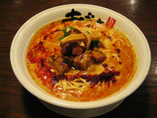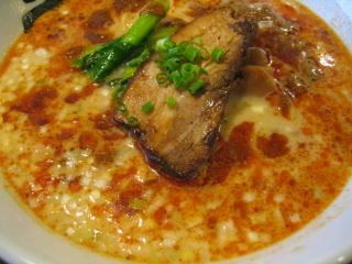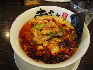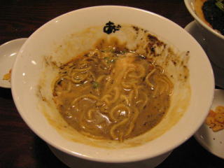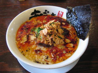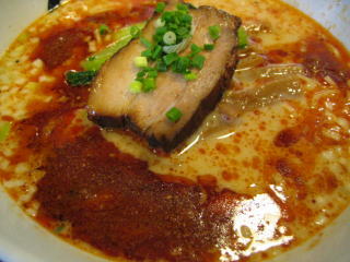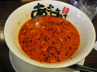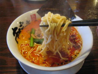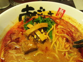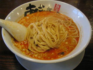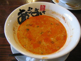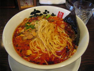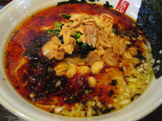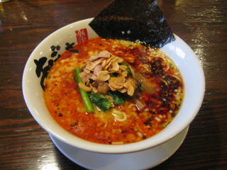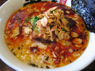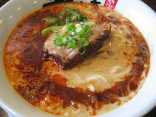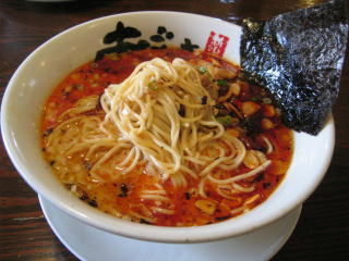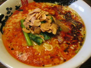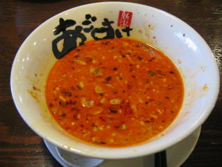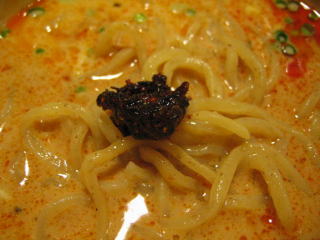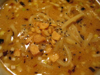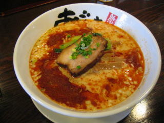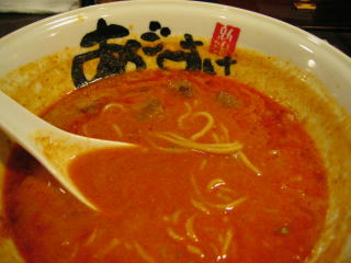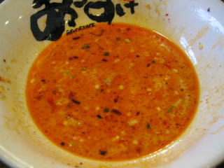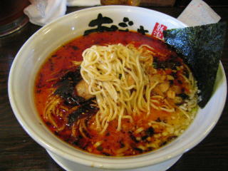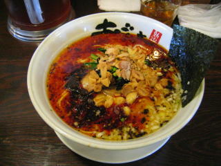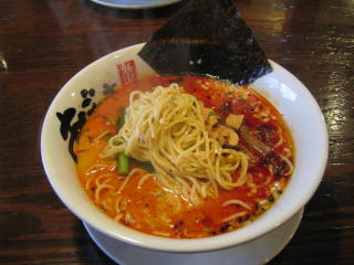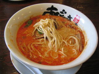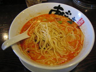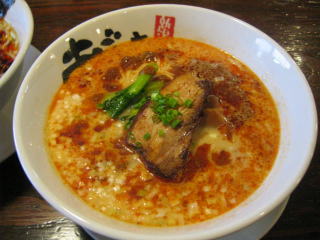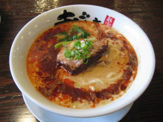 スープに赤みが濃い「ごまから(鶏ベース)」普通盛です。
