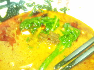 「辣塩とんこつ麺」大盛です、やっぱり辛そうです。